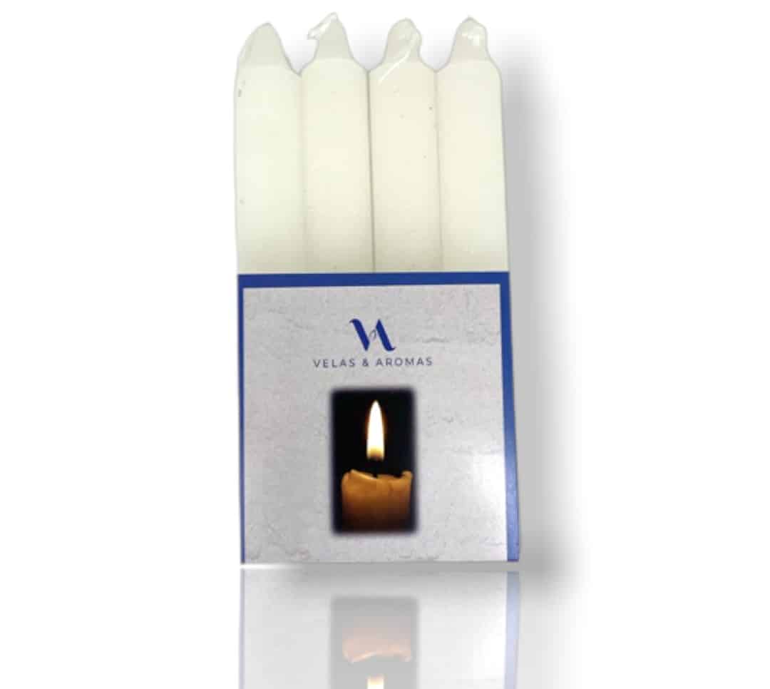 Nuestras velas de candelabro blancas son una opción perfecta para decorar cualquier espacio. Cada juego de cuatro velas está hecha con cera de alta calidad y mide 2 cm de diámetro y 17 cm de largo, lo que les da una apariencia elegante y sofisticada. Ya sea que las uses en una cena romántica, en una celebración especial o simplemente para iluminar tu hogar, estas velas seguramente impresionarán.