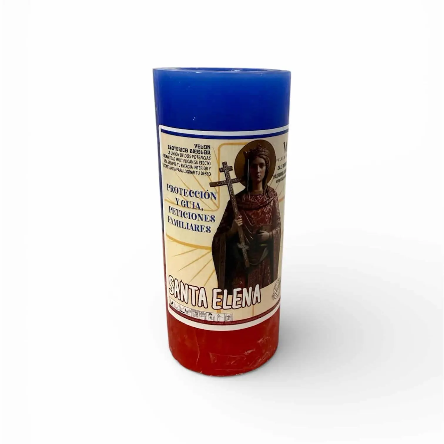 El velón bicolor Santa Elena se utiliza tradicionalmente para peticiones familiares, para atraer la armonía al hogar y fortalecer la unión entre sus miembros. Es una vela muy valorada cuando existen problemas en casa, tensiones emocionales o situaciones que necesitan claridad, guía y protección espiritual.